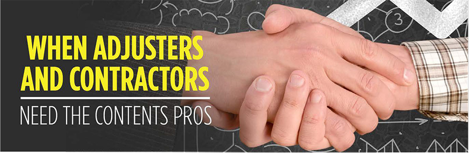 He grits his teeth and calls for a contents team! The structural workers are far more interested in getting to the walls, ceiling, flooring, and roof than they are with the valuables inside, and if a structural company does not have a contents division, either the experienced contractor or the informed adjuster will bring in contents pros for just such situations.