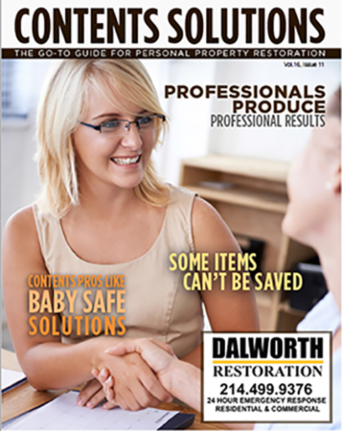 And Nick Pangaro, operations manager for KBM Facility Solutions added, “Green cleaners aren’t designed to kill microorganisms. It’s important to not get so wrapped up with green cleaning ideals that we endanger public health.” So what do the contents professionals use? Watch for future issues of Contents Solutions (or just give us a call). We are looking forward to amazing you!
